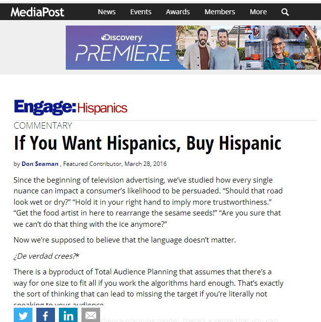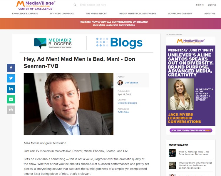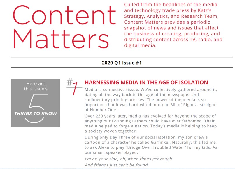 Television Content Matters monthly report for Katz Media Group From my time at the TVB, promoting local broadcast TV over cable programming. From my time at Estrella TV, a national Hispanic broadcast network. Streaming Share this: Share on X (Opens in new window) X Share on Facebook (Opens in new window) Facebook Like Loading...